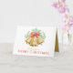 Three golden bells holiday season Christmas cards, pretty golden coloured bells and greenery foliage with a bright red bow, currently reads Wishing you a Merry Christmas or you can customise with your own festive holiday greeting. Other colours and matching items are available or can be created by request. Original hand painted watercolor art and design by Sarah Trett only for www.mylittleeden.com on Zazzle.