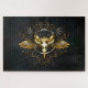 Golden Bird Skull on Black background Jigsaw Puzzle