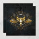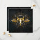 Artistically drawn, symmetrical, composition of black and gold, bird wings, golden, bird skull decorated with gilded pattern on dark, textured background.Gothic style