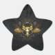 Artistically drawn, symmetrical, composition of black and gold, bird wings, golden, bird skull decorated with gilded pattern on dark, textured background.Gothic style