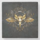 Golden Bird Skull on Black background Stone Coaster