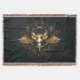 Golden Bird Skull on Black background Throw Blanket