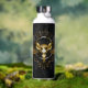 Golden Bird Skull on Black background Water Bottle