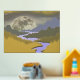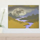 Get your real gold foil print 18x24 inch with a blue purple mountain landscape with golden trees, purple river and white moon. It is a luxury and and abstract design to upgrade your house and walls.