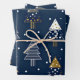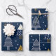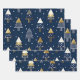 Golden Blue Pine Holiday Wrapping Paper Sheet