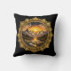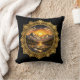 Golden Boho Mandala Mountain Sunset Art | Black Cushion