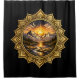Golden Boho Mandala Mountain Sunset Art | Black Shower Curtain