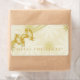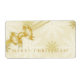 Customisable printer compatible Holiday labels to be personalised and used as gift tags or shipping address labels featuring a festive Holiday theme with golden bow and snowflakes pattern and Christmas greeting.