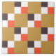 This bold geometric pattern features a dynamic chequerboard layout in warm golden brown, deep espresso, bright coral orange, and crisp white. The large squares create a solid foundation, while smaller accent blocks add rhythm and contrast throughout the composition. The interplay of earthy tones with vivid pops of colour gives the design both balance and energy. Its repeating motif captures the eye with a mix of retro charm and modern minimalism, making it a striking choice for anyone who loves structured, colourful patterns.