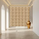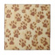 This tile features a seamless pattern of golden brown paw prints on a light brown background, perfect for pet lovers or adding a touch of animal charm to any space. The design is ideal for use in bathrooms, kitchens, or as decorative accents. The repeating paw print motif creates a visually appealing and cohesive look.