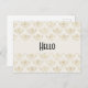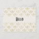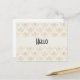 A hello postcard with an elegant pattern with gold coloured bumble bees in a repeating pattern on a cream coloured background.