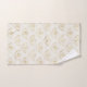 Towel set with an elegant pattern with gold coloured bumble bees in a repeating pattern on a cream coloured background.