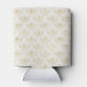Can cooler with an elegant pattern with gold coloured bumble bees in a repeating pattern on a cream coloured background.