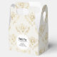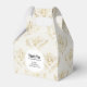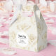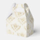 Tiny favour box with an elegant pattern with gold coloured bumble bees in a repeating pattern on a cream coloured background.