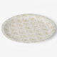 Paper plates with an elegant pattern with gold coloured bumble bees in a repeating pattern on a cream coloured background.