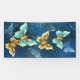 Composition of flying, jewellery, gold and dark butterflies on textured jewellery background. Golden butterfly.