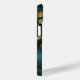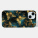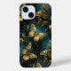 An elegant iPhone 15 Case (barely there) with a butterflies pattern in glittering golden hues and glowing blues.