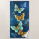 Composition of flying, jewellery, gold and dark butterflies on textured jewellery background. Golden butterfly.