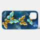Composition of flying, jewellery, gold and dark butterflies on textured jewellery background. Golden butterfly.