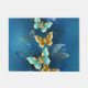 Composition of flying, jewellery, gold and dark butterflies on textured jewellery background. Golden butterfly.