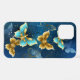 Composition of flying, jewellery, gold and dark butterflies on textured jewellery background. Golden butterfly.