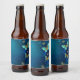 Golden Butterflies on a Blue Background Beer Bottle Label