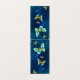 Flying gold, jewellery butterfly on blue textural background. Design with butterflies.