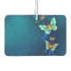 Flying gold, jewellery butterfly on blue textural background. Design with butterflies.