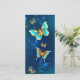 Flying gold, jewellery butterfly on blue textural background. Design with butterflies.