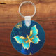 Golden Butterflies on a Blue Background Key Ring