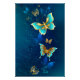 Flying gold, jewellery butterfly on blue textural background. Design with butterflies.