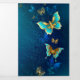 Golden Butterflies on a Blue Background Tri-Fold Card
