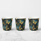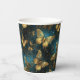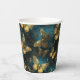 An elegant set of paper cups with a butterflies pattern in glittering golden hues and glowing blues.