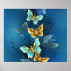 Composition of flying, jewelry, gold and dark butterflies on textured jewelry background. Golden butterfly.