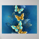 Composition of flying, jewellery, gold and dark butterflies on textured jewellery background. Golden butterfly.