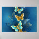 Composition of flying, jewelry, gold and dark butterflies on textured jewelry background. Golden butterfly.