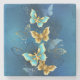 Golden butterflies stone coaster