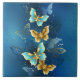 Composition of flying, jewelry, gold and dark butterflies on textured jewelry background. Golden butterfly.