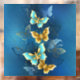 Composition of flying, jewellery, gold and dark butterflies on textured jewellery background. Golden butterfly.