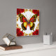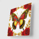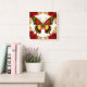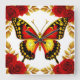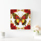 Golden Butterfly With Red Roses And Golden Leaves Square Wall Clock