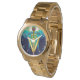 GOLDEN CADUCEUS VETERINARY SYMBOL / Aqua Blue,Teal Watch