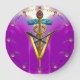 GOLDEN CADUCEUS VETERINARY SYMBOL / Pink Fuchsia Large Clock