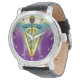 GOLDEN CADUCEUS VETERINARY SYMBOL / Purple Green Watch