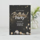 What kind of design would you like for your birthday invitation? Do you have any specific ideas in mind for the theme, colours, or layout? Let me know and I'll do my best to help you create a beautiful and playful invitation with a black and gold colour scheme!