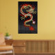 Golden Chinese Dragon Fucanglong on Black Silk Poster