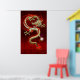Golden Chinese Dragon Fucanglong on Red Silk Poster