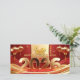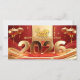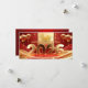 Large golden 2026 in 3D with vertical golden greeting in Chinese + Happy Chinese New Year and golden paper-cut (printed image) of a horse. Design on horizontal flat holiday card with texts to customize in the back. Matching greeting card. Perfect for Chinese New Year of The Horse 2026.