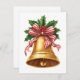 Golden Christmas Bell Holly and Stripe Bow Holiday Card