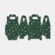 Elegant seamless pattern featuring golden bells, ribbons, and stars on a deep green background. Perfect for wrapping paper, festive stationery, mugs, and gift tags during the holiday season.