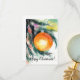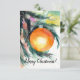 a traditional watercolor artwork featuring a golden coloured christmas ornament hanging from a christmas on a christmas card.